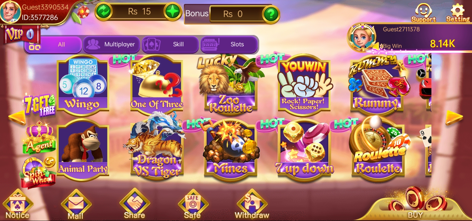It offers its playerbase a diverse and unique game library. From slots games, lottery, roulettes, to poker this app has it all. With a whopping 40 + games you can experience the true thrill of casino games on this platform. Here we will provide you with a list of all the games that you can play on this platform.